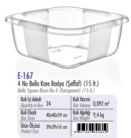 4 No Bella Kare Badya (Şeffaf ) ERKOÇ 15 LT