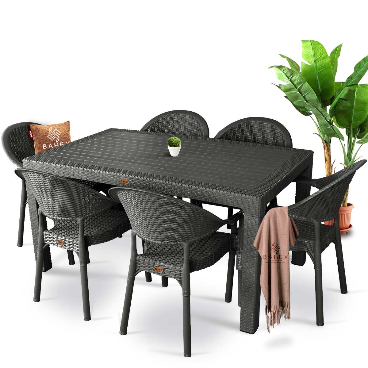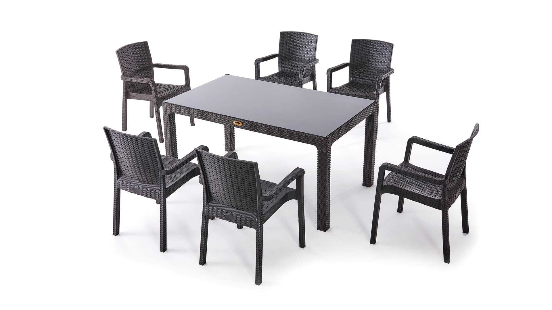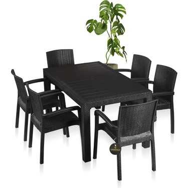 HİLTON KOLTUKLU RATTAN 90*150 MASA TK ANTRASİT NET