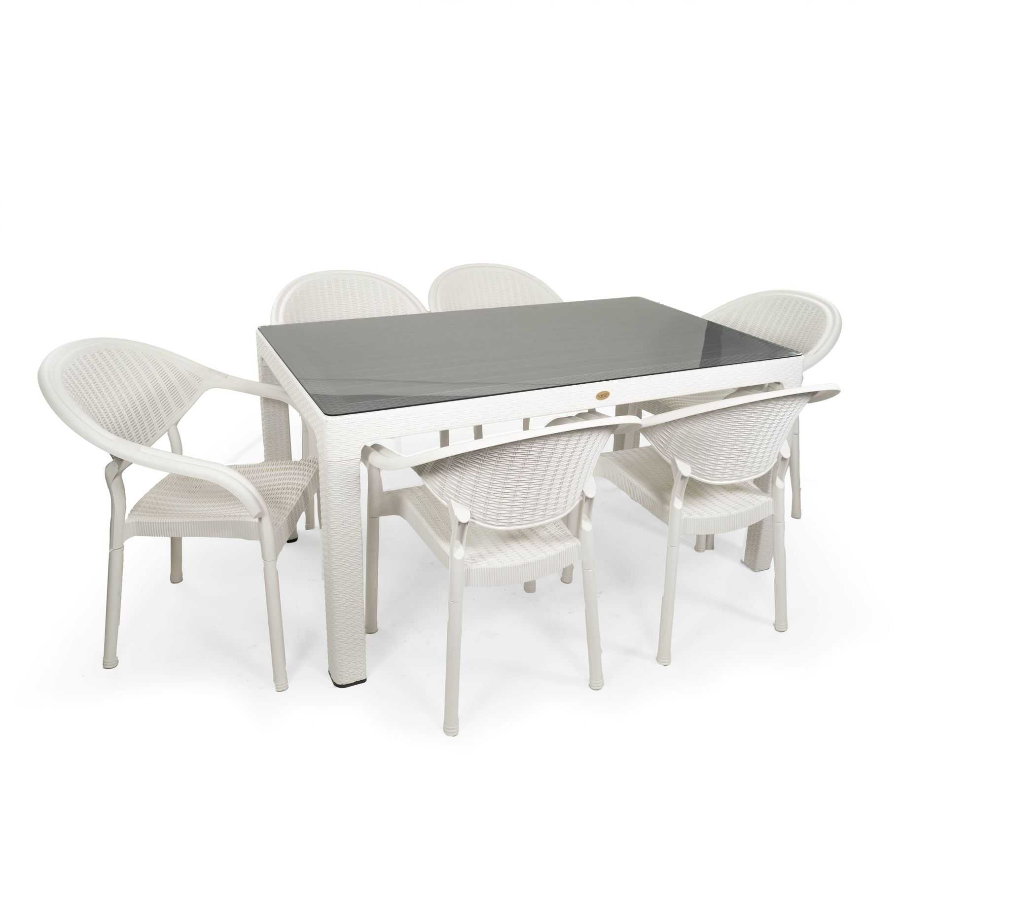 ÇALIŞKAN 90*150 CAMLI RATTAN MASA BEYAZ RİPOSSO