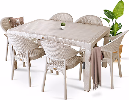 ATLANTİS BAMBU MASA TAKIMI 90*150 BEYAZ NET