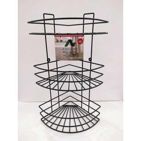 ASKICIM 3 KATLI METAL BANYO KÖŞELİK SİYAH