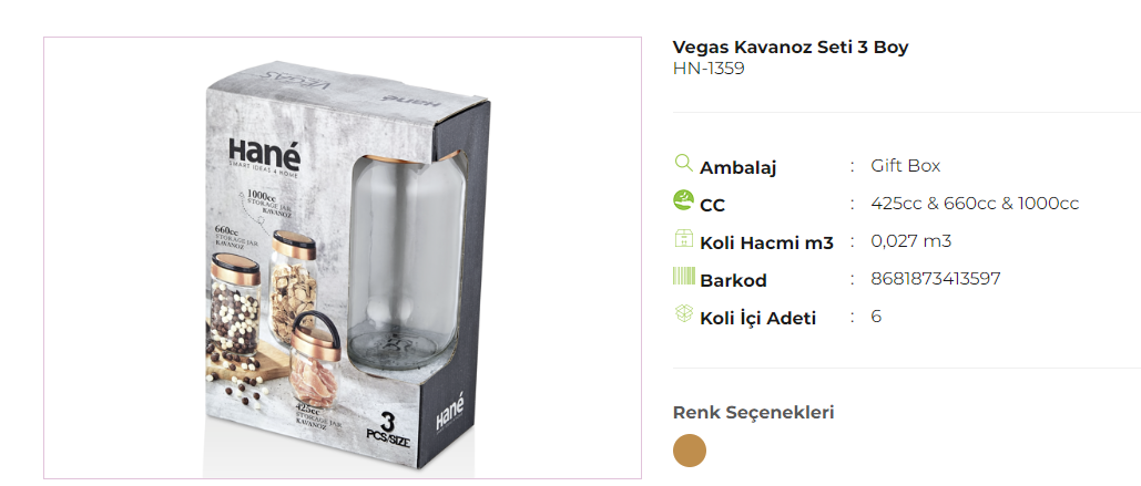 Vegas Kavanoz Seti 3 Boy Hane*6