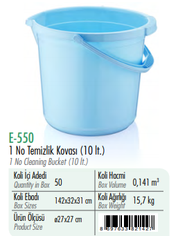 ERKOÇ 1 NO TEMİZLİK KOVASI RENKLİ 10 LT
