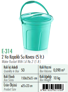 2 No Kapaklı Su Kovası ERKOÇ 5 LT
