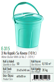 3 No Kapaklı Su Kovası ERKOÇ 10 LT
