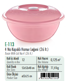 4 No Kapaklı Hamur Leğeni ERKOÇ 26 LT*12