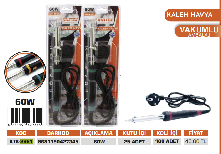 KNITEX KALEM HAVYA LEHİM SETİ 40W KTX-2658 *100