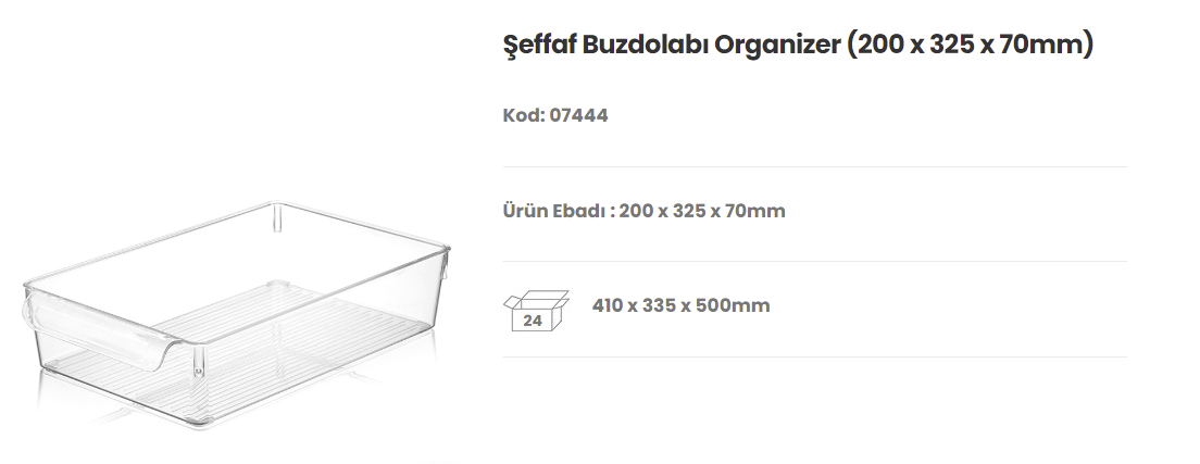 Dünya 200*325*70 Şeffaf Buzdolabı Organizer