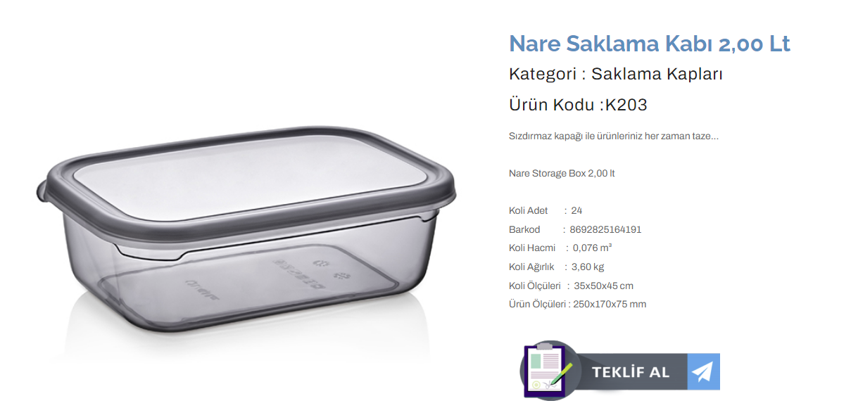 KULAÇ NARE SAKLAMA KABI 2,00 LT