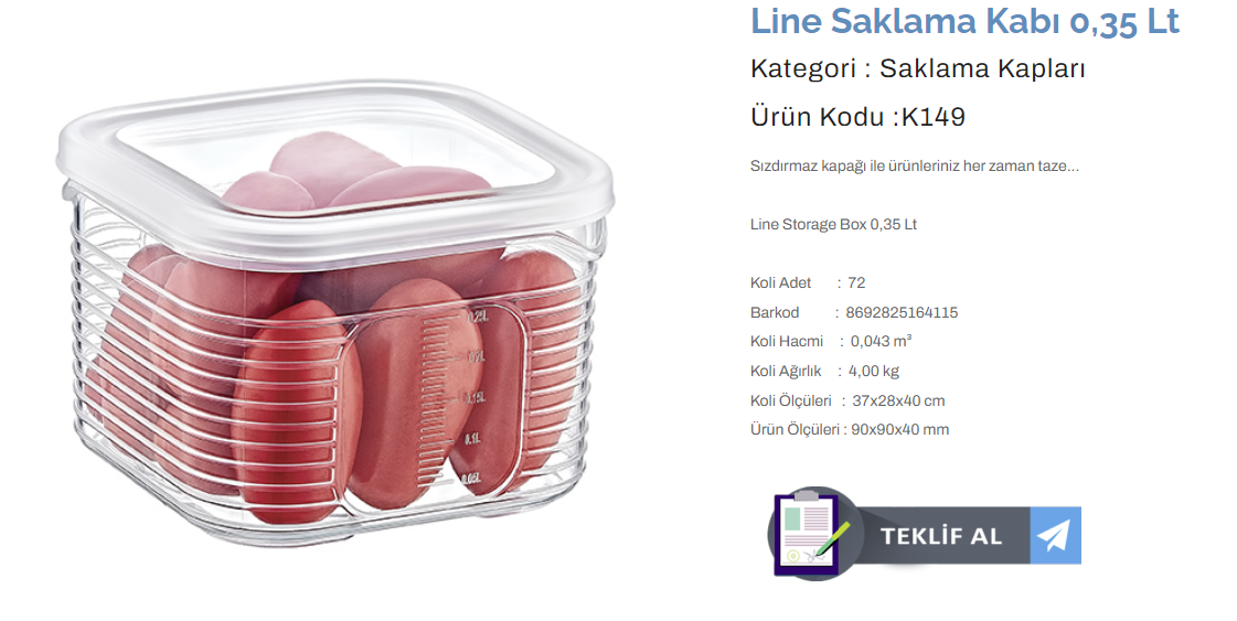 KULAÇ LINE SAKLAMA KABI 3,5 LT