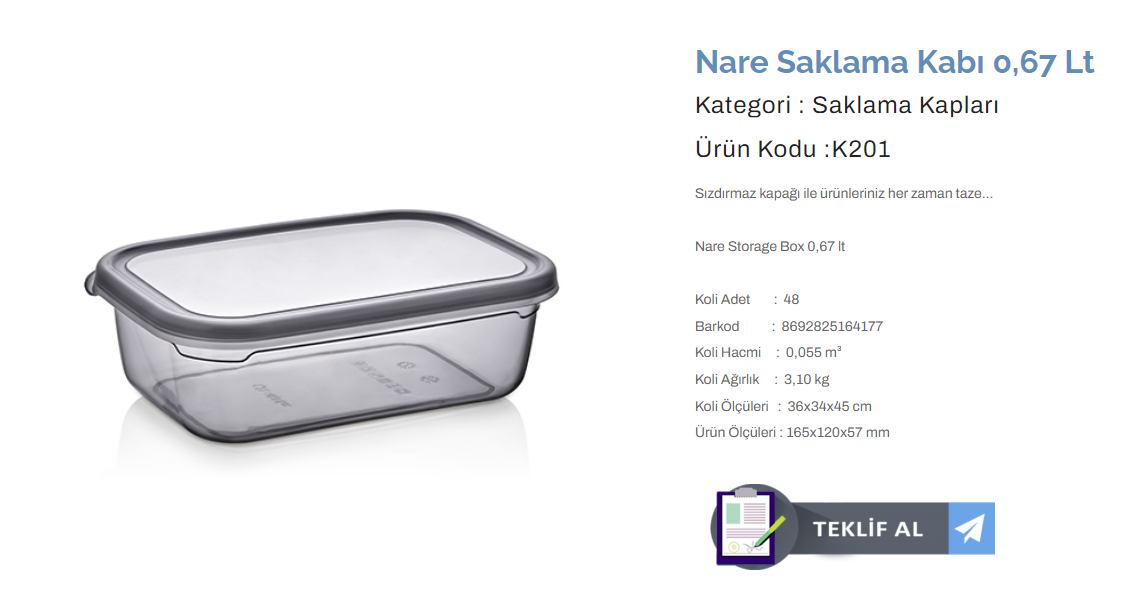 KULAÇ NARE SAKLAMA KABI 0,67 LT