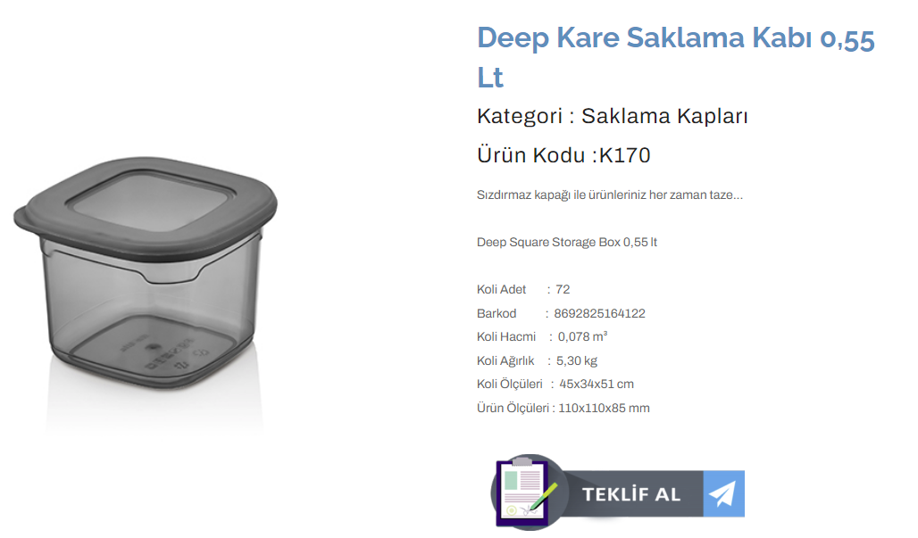 KULAÇ DEEP KARE SAKLAMA KABI 0,55 LT