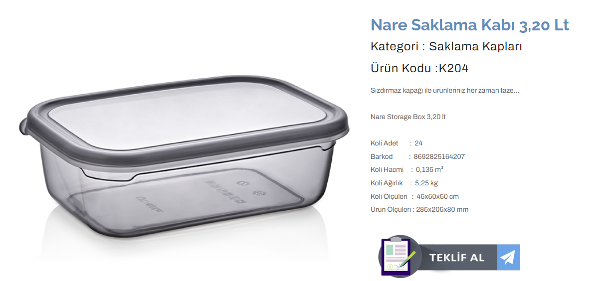 KULAÇ NARE SAKLAMA KABI 3,20 LT