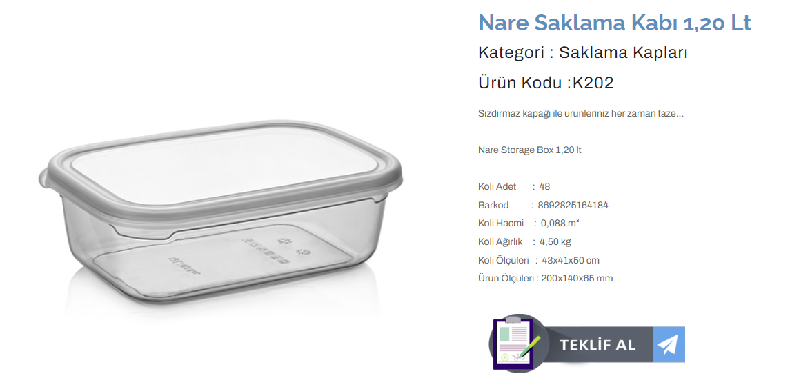 KULAÇ NARE SAKLAMA KABI 1,20 LT