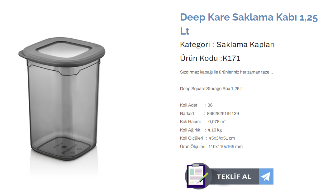 KULAÇ DEEP KARE SAKLAMA KABI 1,25 LT