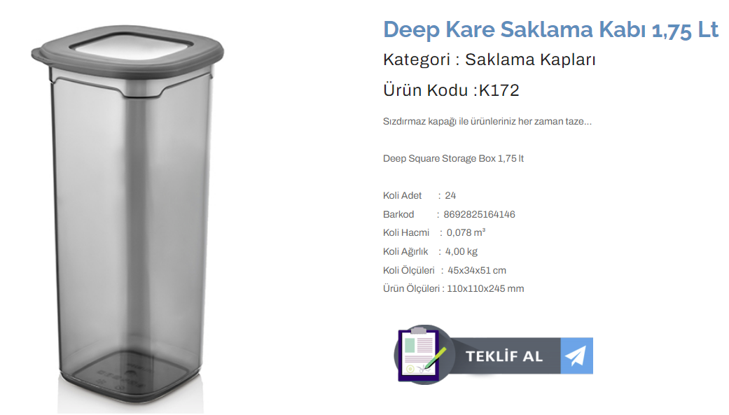 KULAÇ DEEP KARE SAKLAMA KABI 1,75 LT