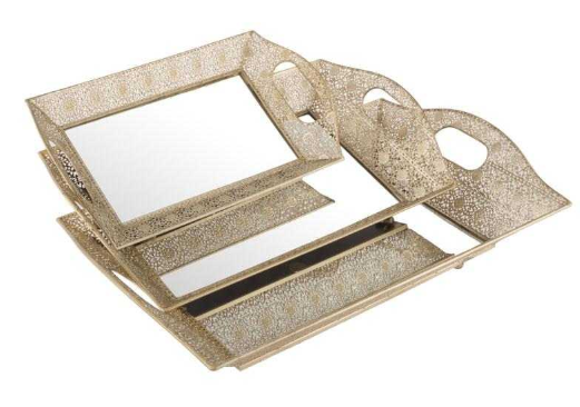 TERCİH 3 LÜ CAM TEPSİ ALTIN KULP