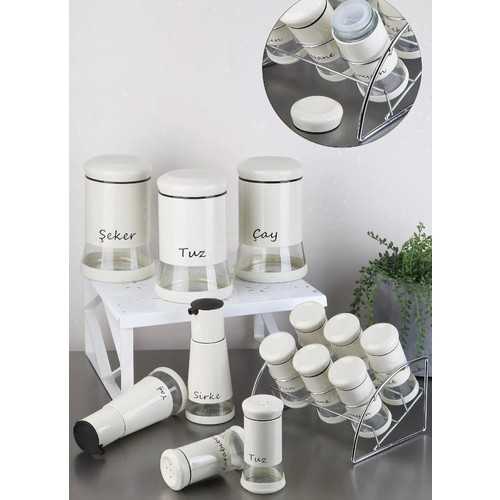MİRAÇ 8 Lİ METAL STANDLI BEYAZ BAHARAT TAKIMI*4
