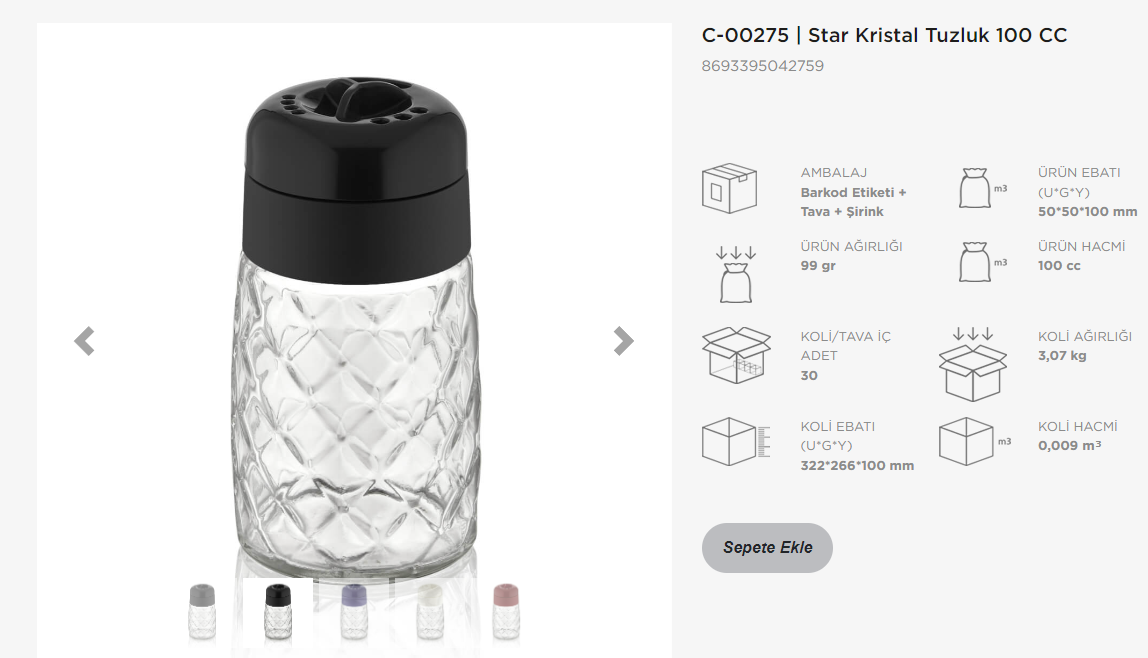 C-00275 * STAR KRİSTAL TUZLUK 100 CC * 30 LÜX